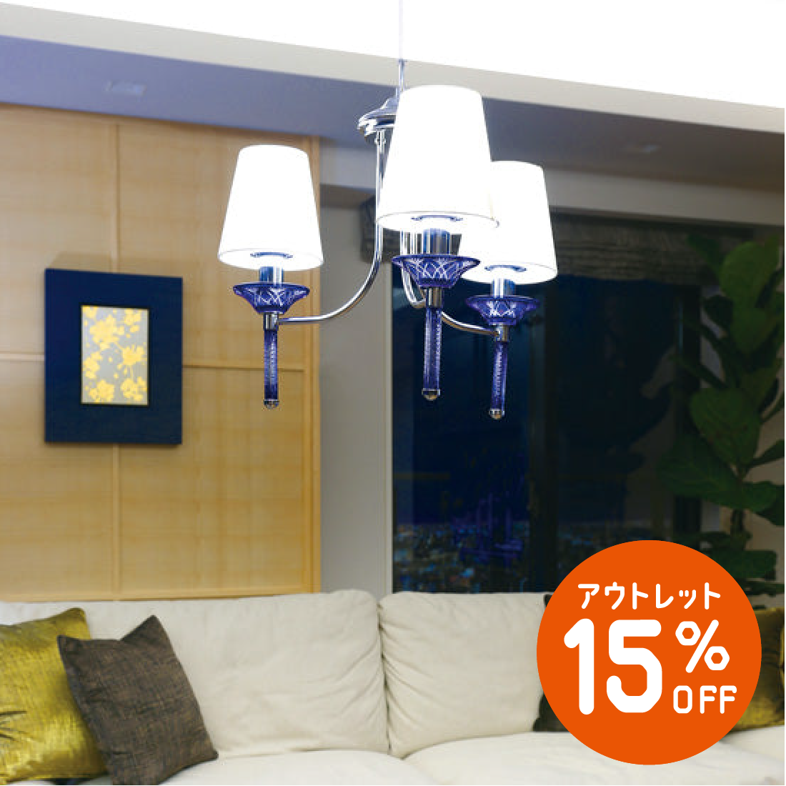【アウトレット 箱不良】きらめく切子ガラス 3灯ペンダントライト 青/赤 KRI003B(R) 引掛シーリング