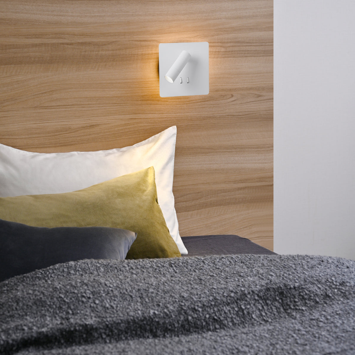 間接光&スポットタイプ 読書灯 ベッド ヘッドボード 寝室照明 ホテル照明 リーディングライト 角型 MBK025 【梱包60サイズ】