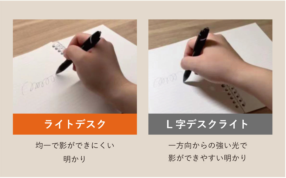 一方向からではなく、多方向から手元を明るく照らしてくれるため、手元に影をつくりにくい視作業に適したあかりです。